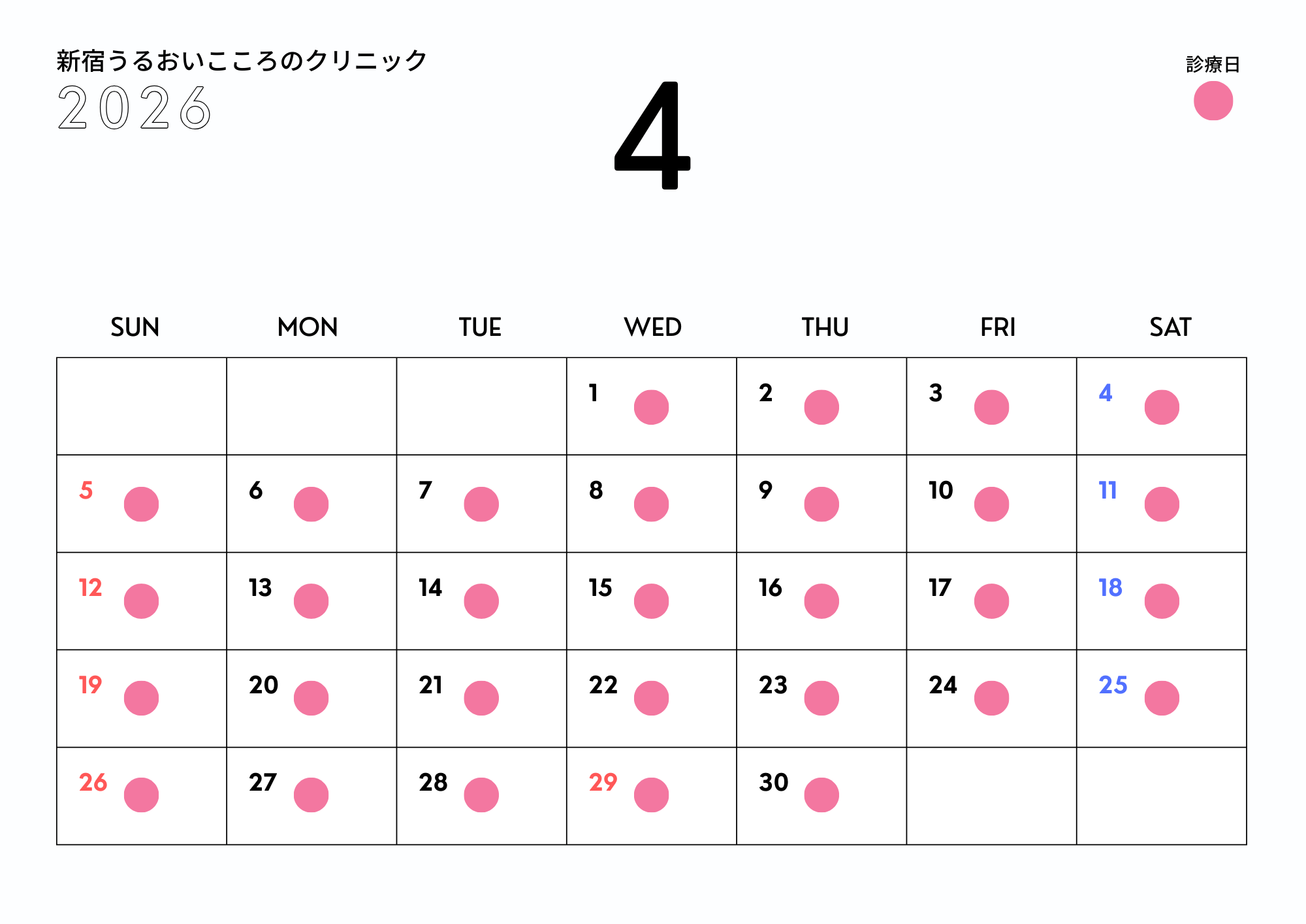 新宿うるおいこころのクリニック2026年5月診療日のお知らせ